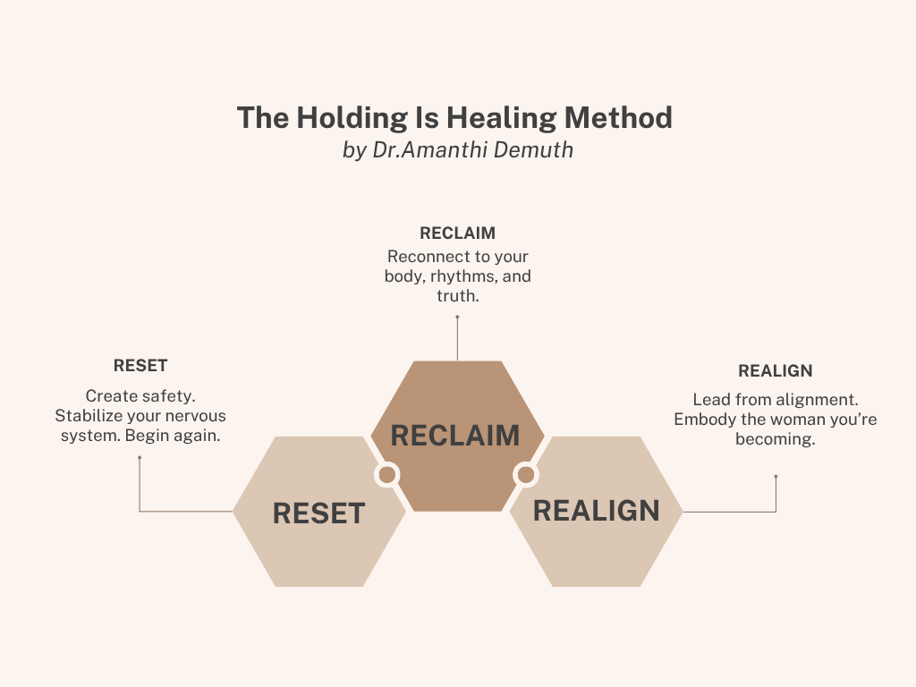 Apply to work privately with Dr. Amanthi Demuth through her transformative 1:1 coaching program rooted in The HOLDING IS HEALING Method.
